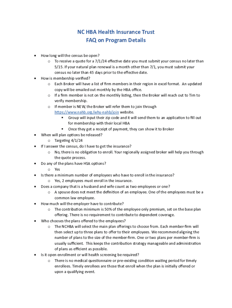 Get the free Nc Hba Health Insurance Trust Faq