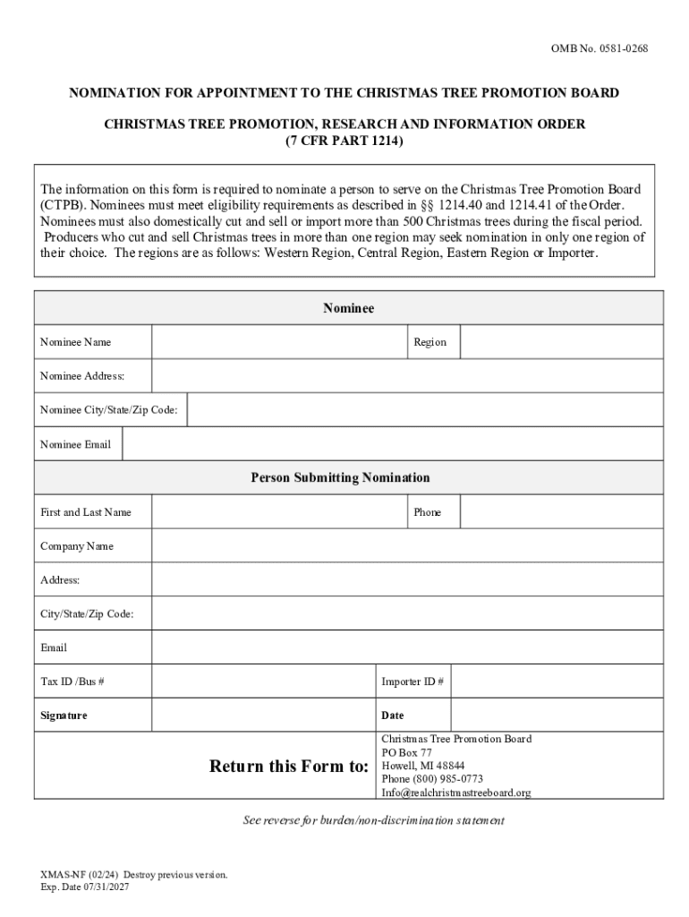 Get the free Nomination for Appointment to the Christmas Tree Promotion Board