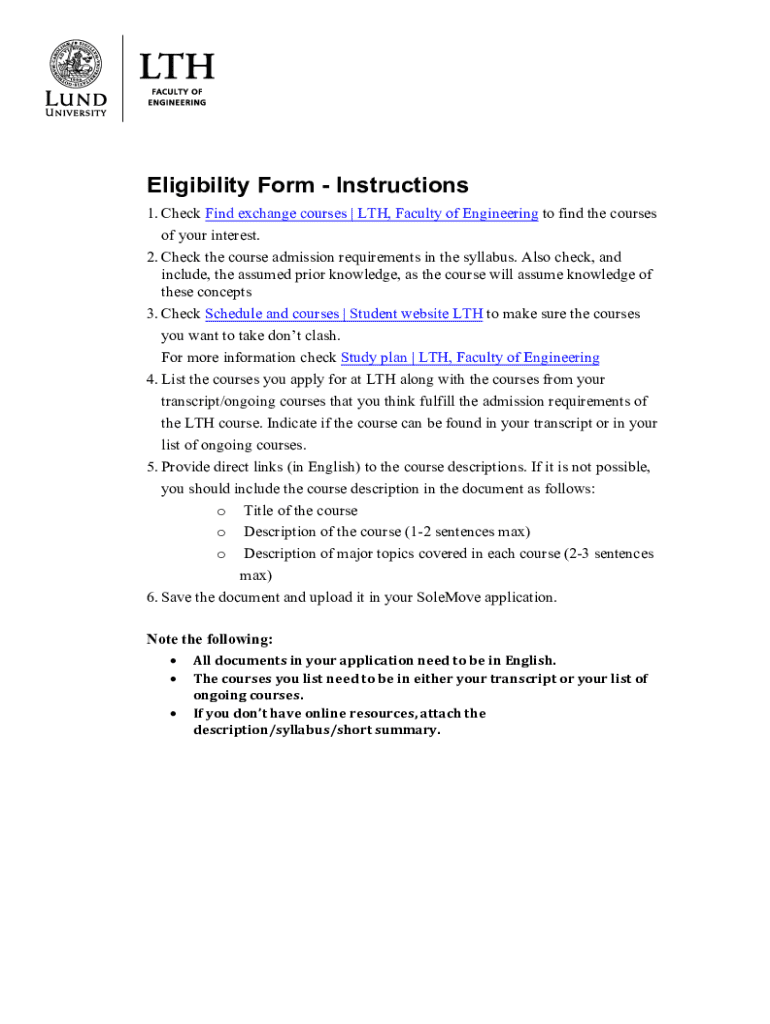 Get the free Eligibility Form - Instructions