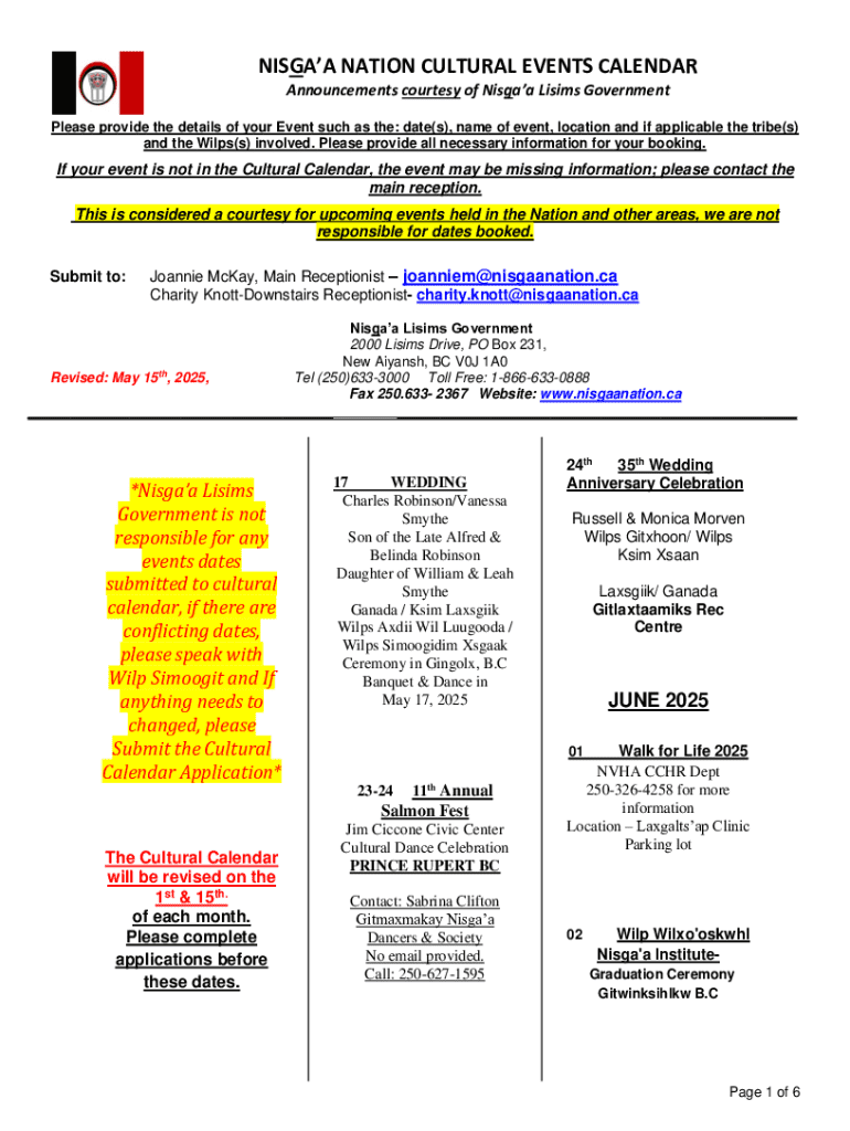 Nisgaa Nation Cultural Events Form: A Comprehensive Guide