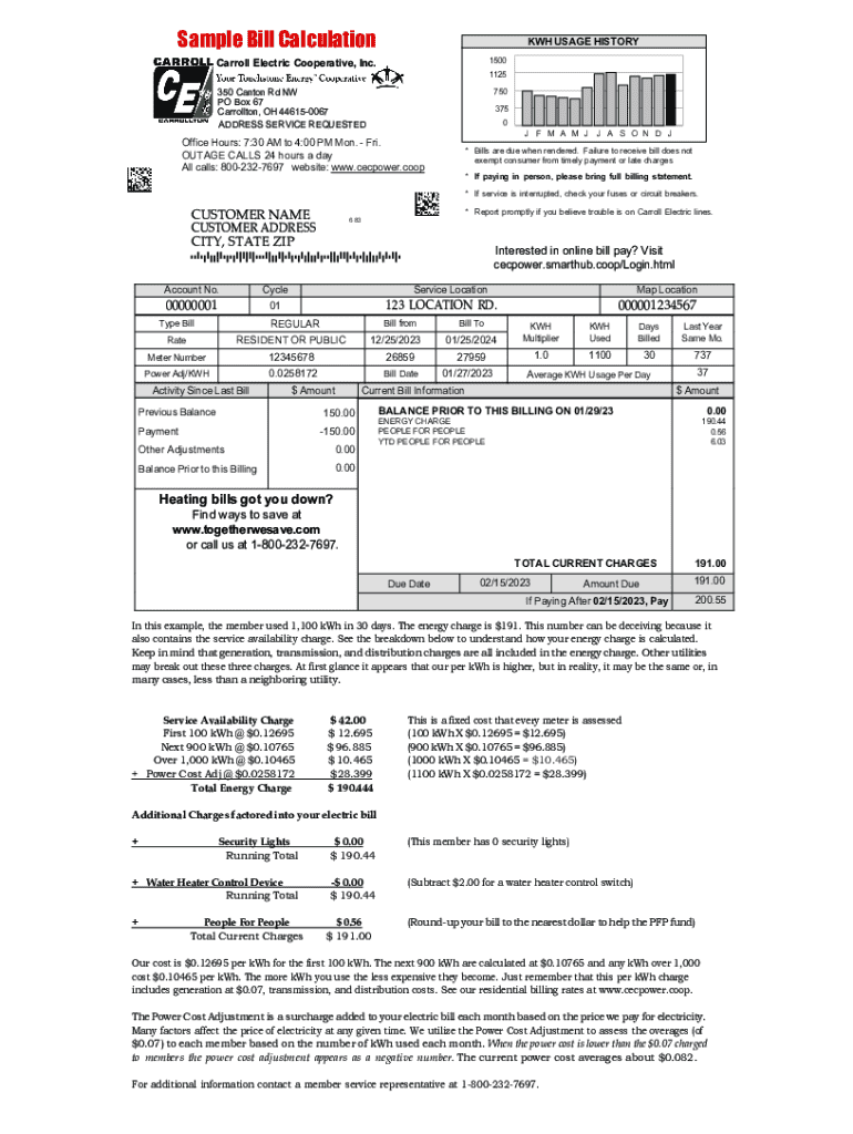 Get the free Sample Bill Calculation