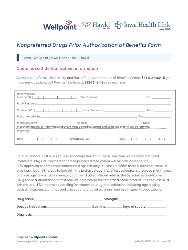 Filling out the nonpreferred drugs prior authorization form accurately is critical. The form generally requires various pieces of information to signify medical necessity effectively. Key details include patient demographics, prescriber information, and a thorough medical history with justification for prescribing the nonpreferred medication.