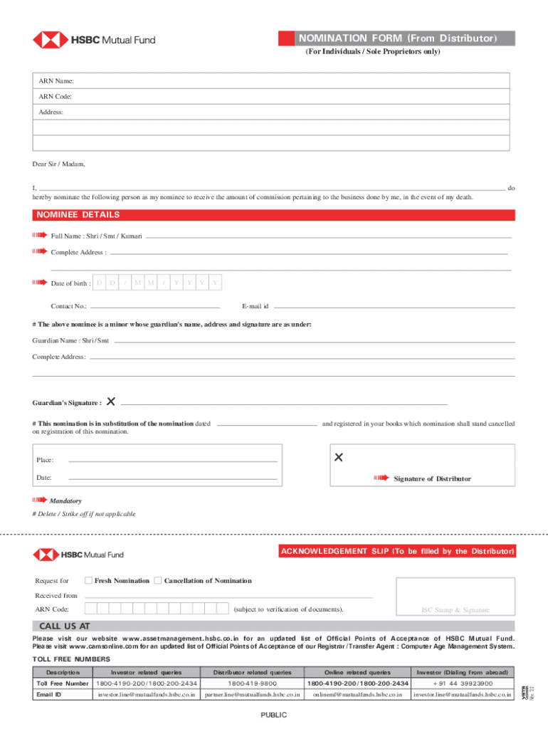 To fill out the nomination form, one must provide the distributor’s details, including name, address, and contact information, as well as information about the products to be distributed and any relevant terms of agreement.