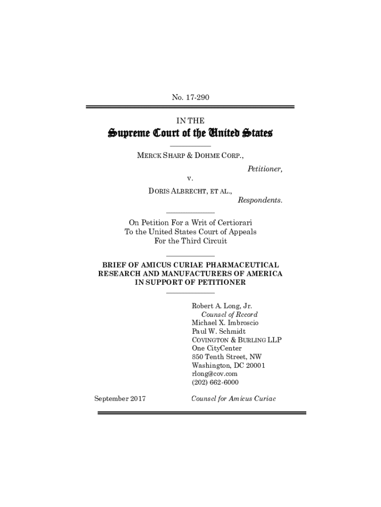 This document is a legal brief submitted to the Supreme Court of the United States concerning a case involving Merck Sharp & Dohme Corp. and the implications of FDA labeling decisions on state law