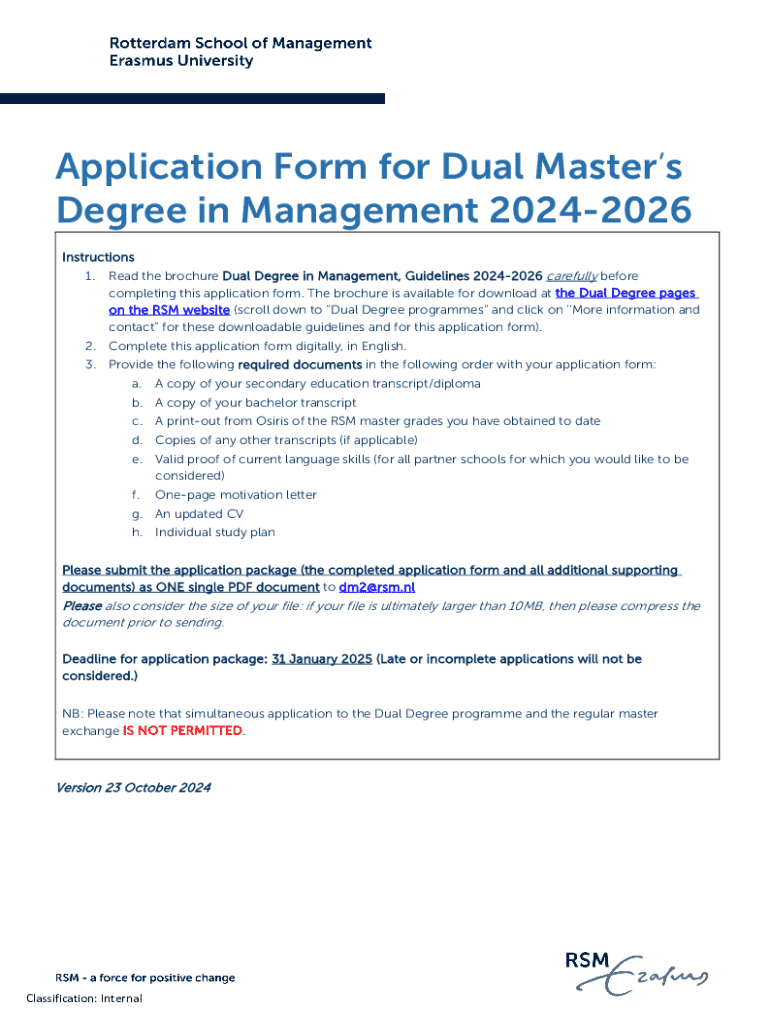 Get the free Application Form for Dual Master’s Degree in Management 2024-2026