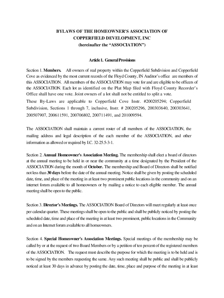Get the free Bylaws of the Homeowner's Association of Copperfield Development, Inc