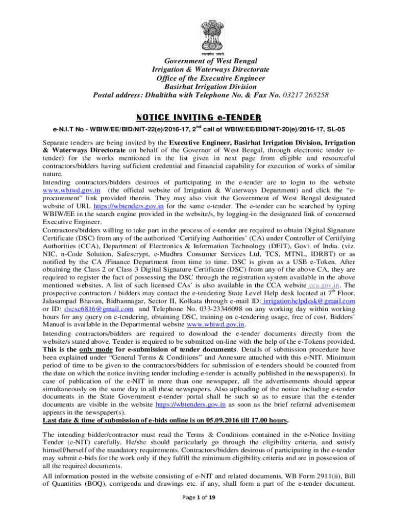 Get the free Notice Inviting E-tender