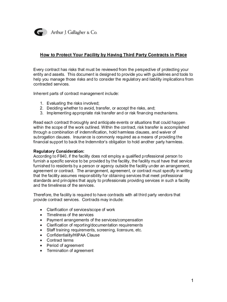Get the free How to Protect Your Facility by Having Third Party Contracts in Place