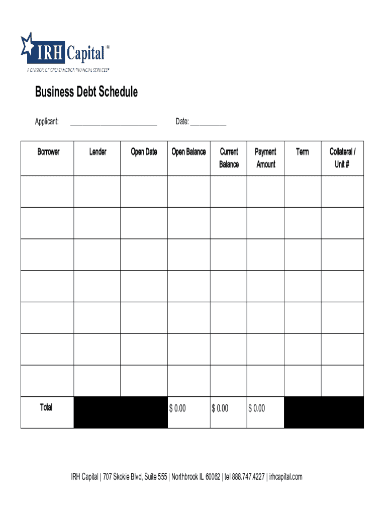 Get the free Business Debt Schedule