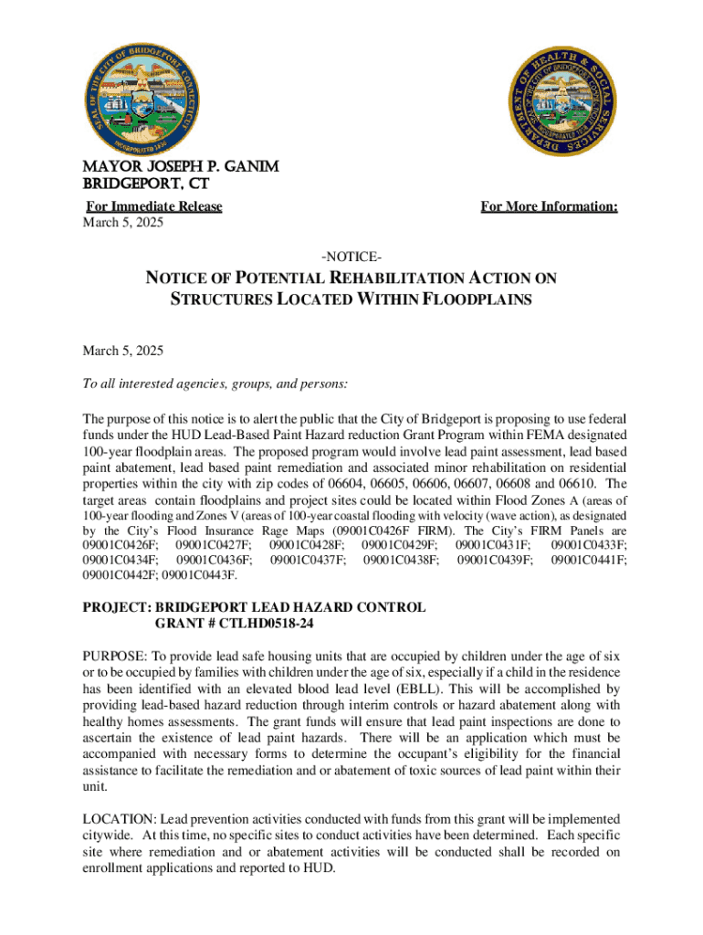 Get the free NOTICE OF POTENTIAL REHABILITATION ACTION ON STRUCTURES LOCATED WITHIN FLOODPLAINS