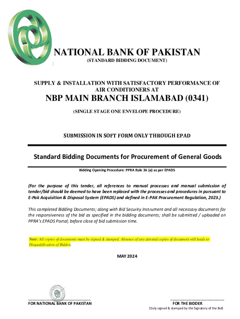 Get the free National Bank of Pakistan Standard Bidding Document