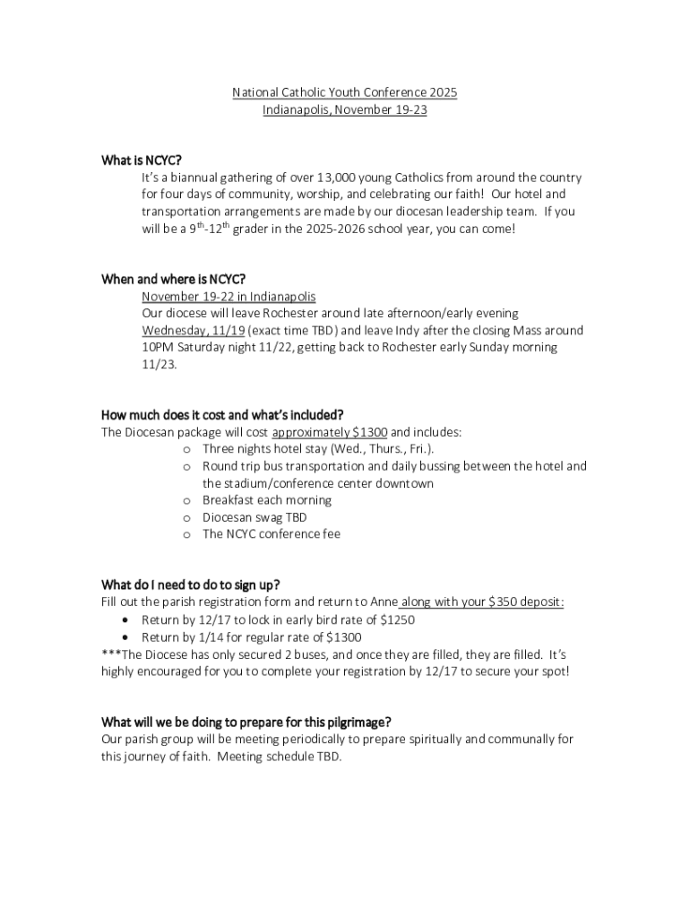 As the conference date approaches, maintaining communication among participants is essential for coordination and excitement. Utilizing social media platforms, group chats, or newsletters can keep everyone informed and engaged. Preparing for the NCYC with workshops or training sessions can ensure that participants are not only ready but also excited about what lies ahead.