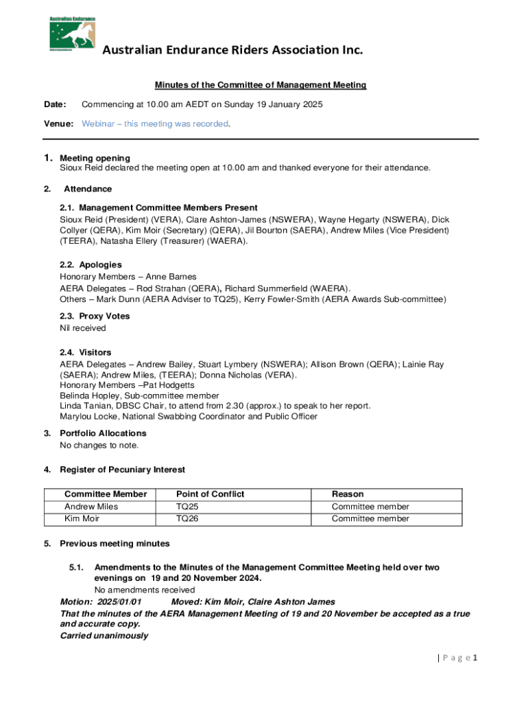 A comprehensive guide to AERA committee meeting minutes form