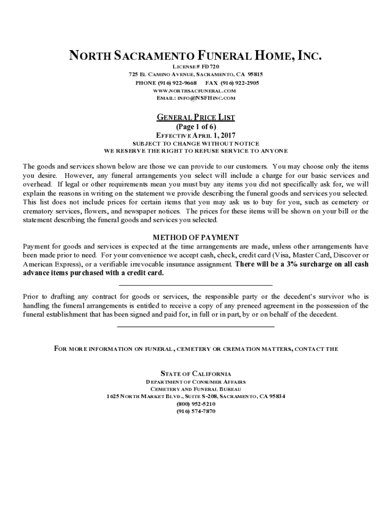 Get the free North Sacramento Funeral Home General Price List
