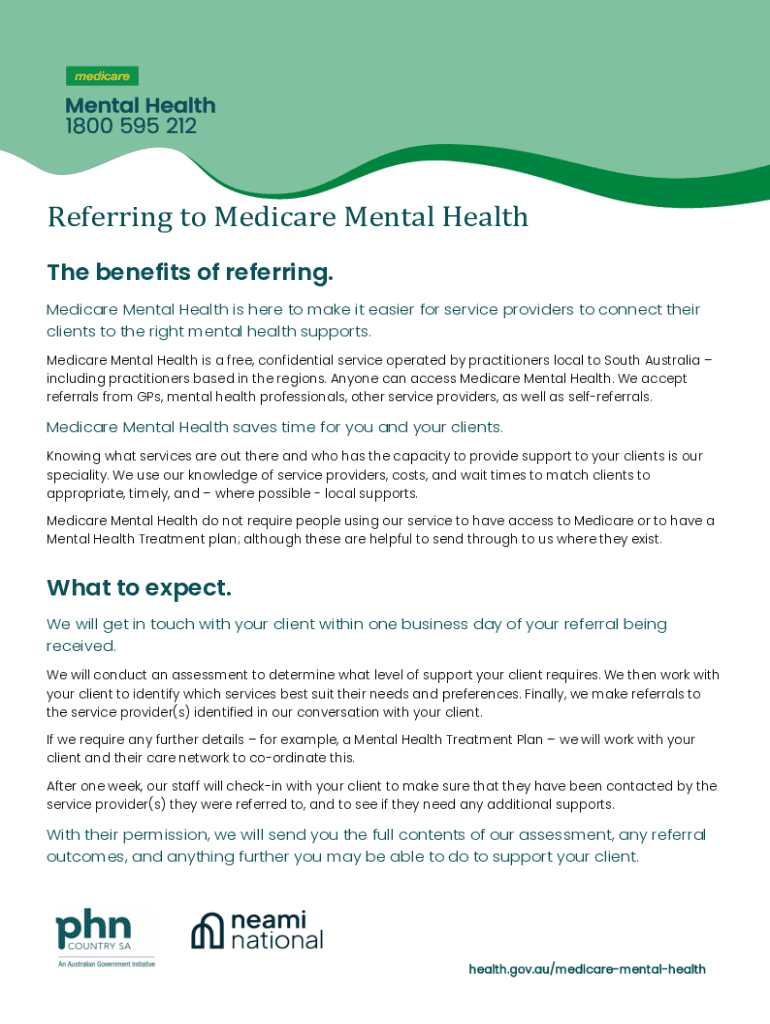 A guide for service providers on how to refer clients to Medicare Mental Health, detailing the process, critical information needed, and what to expect after a referral is made.