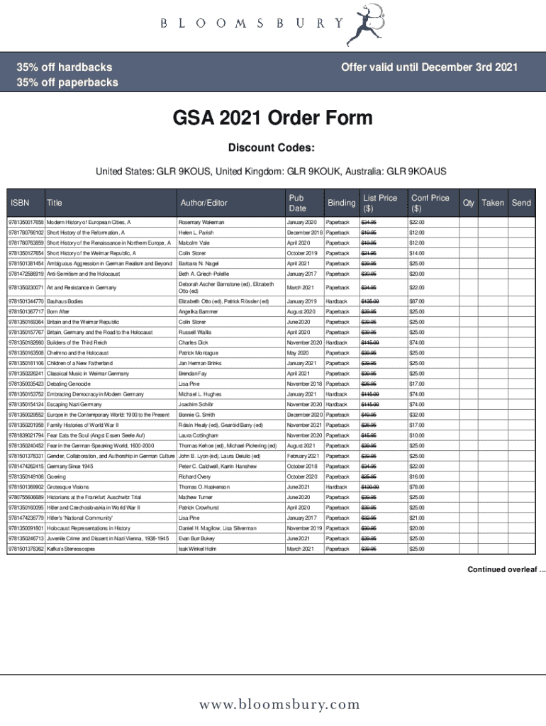 Get the free Gsa 2021 Order Form