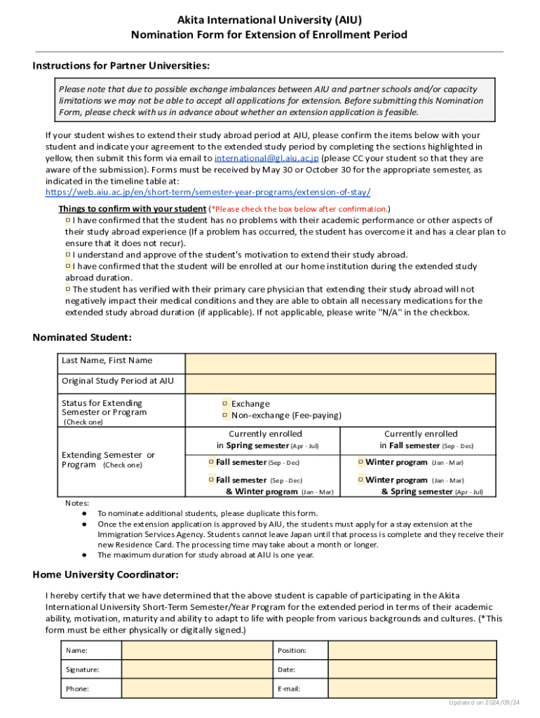 Completing the nomination form for extension requires careful preparation. Begin by gathering all necessary information and documents that will support your request. This not only involves identifying the details pertinent to your case but also aligning them with any guidelines provided by your institution or organization.