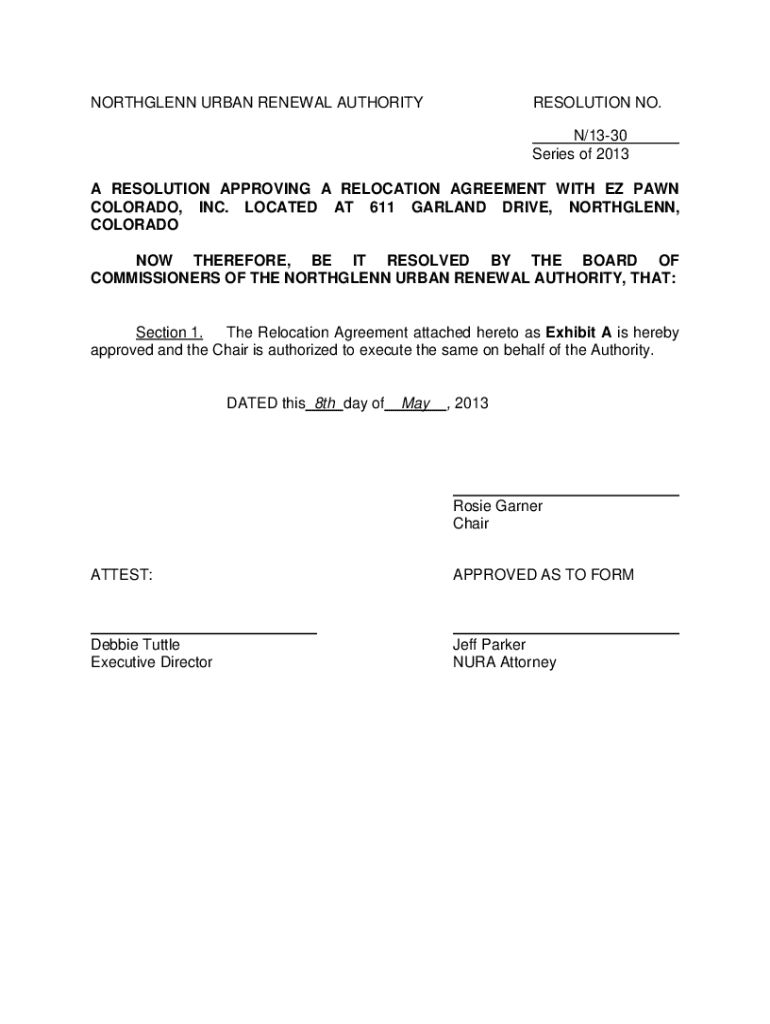Get the free Northglenn Urban Renewal Authority Resolution - webdocs northglenn