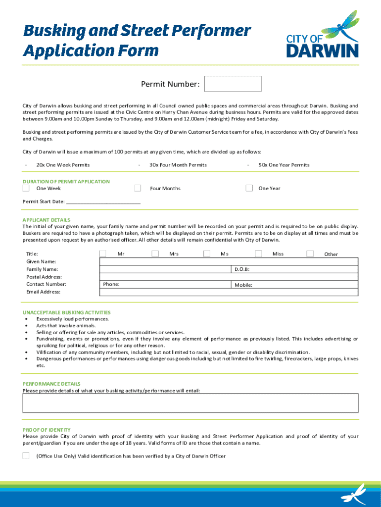 To legally perform in public spaces, street performers typically need to complete several applications, including a performance license application and a public space use permit. Accessing these forms can be accomplished through government websites or local arts councils dedicated to fostering community engagement through art.