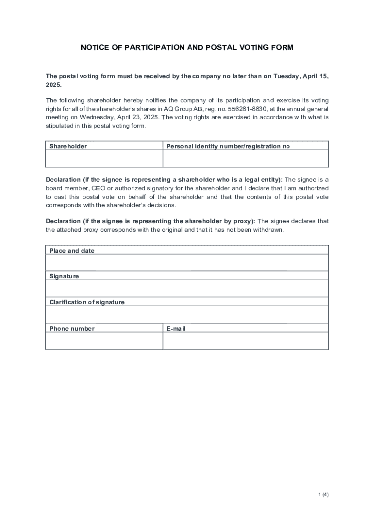 Get the free Notice of Participation and Postal Voting Form
