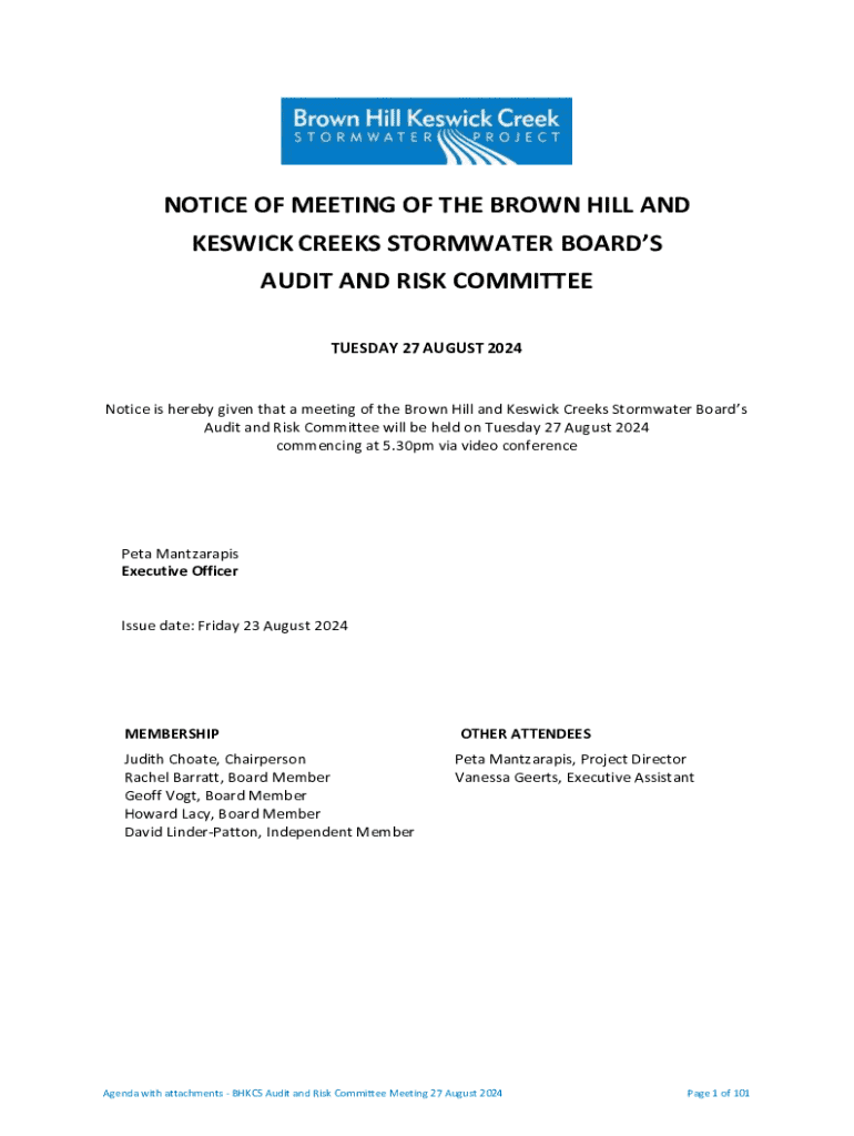 Get the free Notice of Meeting of the Brown Hill and Keswick Creeks Stormwater Board’s Audit and ...