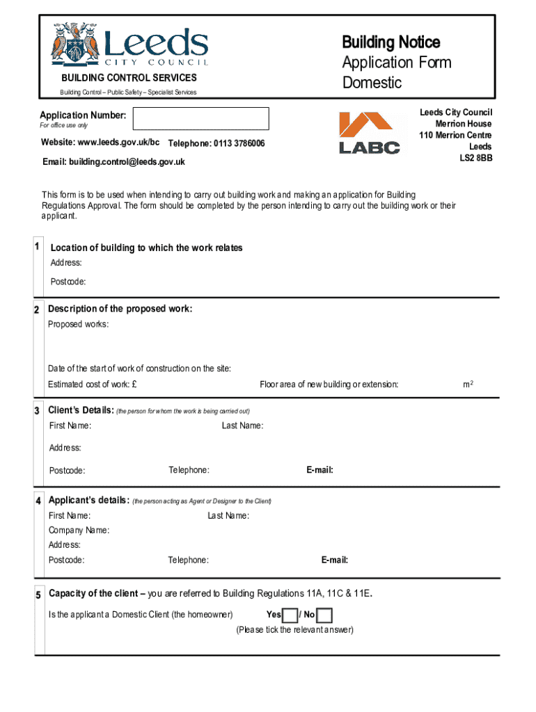 Get the free Building Notice Application Form