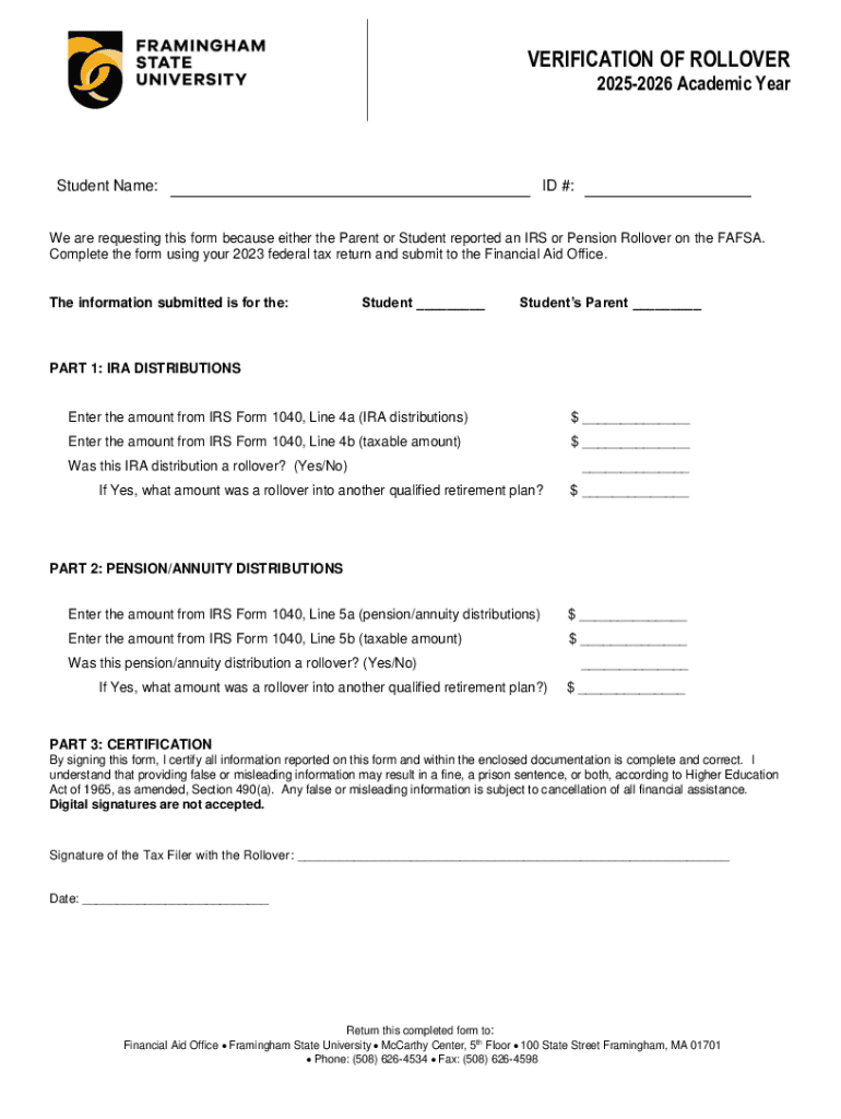 How to fill out verification of rollover