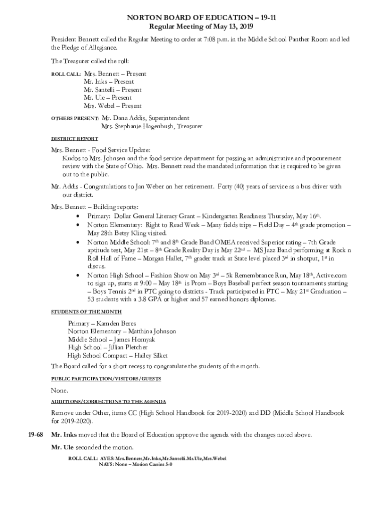 Get the free Norton Board of Education – 19-11