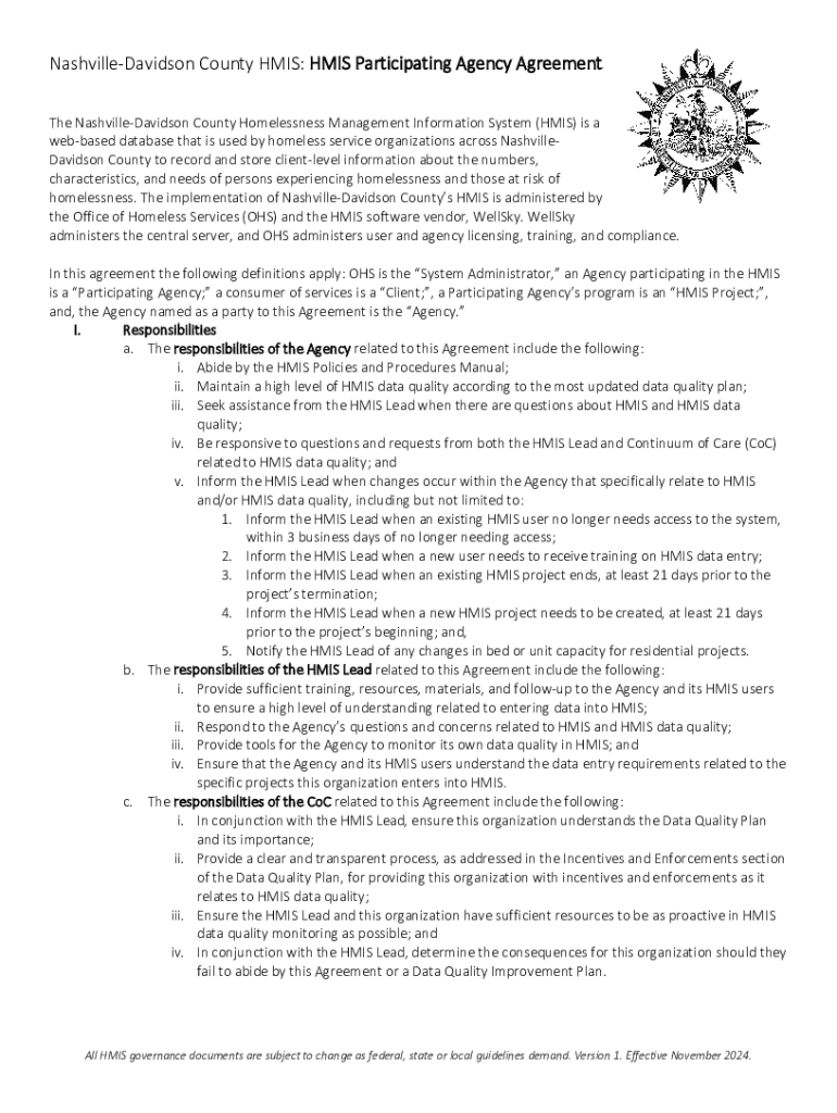 Get the free Nashville-davidson County Hmis: Hmis Participating Agency Agreement