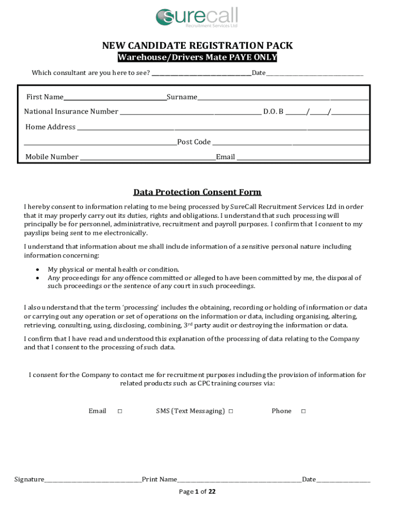 The new candidate registration pack form serves as a vital document for individuals seeking employment across various sectors. Its primary purpose is to gather essential information that helps recruiters understand candidates' backgrounds, skills, and experiences. Completing this registration pack accurately is crucial as inaccuracies can lead to misunderstandings during the hiring process or even disqualifications from consideration.