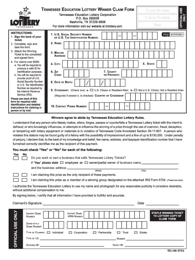 Get the free TEL Winner Claim Form July 2023