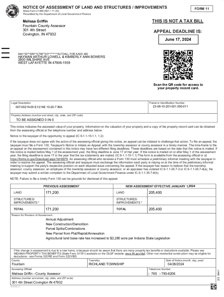 Get the free Notice of Assessment of Land and Structures / Improvements