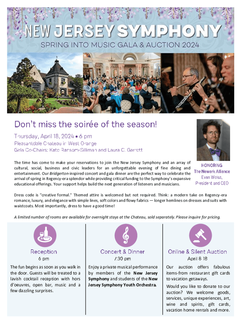 The New Jersey Symphony Form serves as an essential document for patrons seeking to engage with upcoming symphony events in New Jersey. This form plays a critical role in helping the New Jersey Symphony Orchestra (NJSO) manage ticket sales, reservations for specific concerts, and gathering relevant personal details from attendees. With a legacy that celebrates the arts, the form not only facilitates logistical planning but also enriches the patron experience.