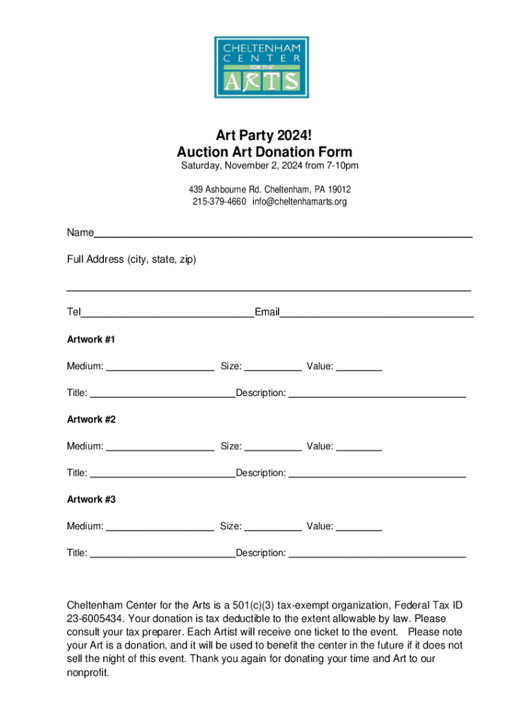 Auction Art Donation Form is not the form you're looking for?Search for another form here.