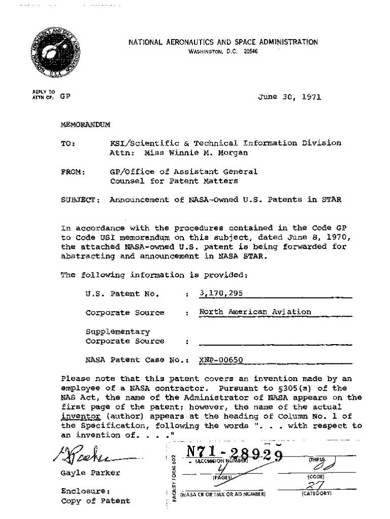 Get the free SUBJECTr Announcement of NASA-Owned U, S, Patents ... - ntrs nasa