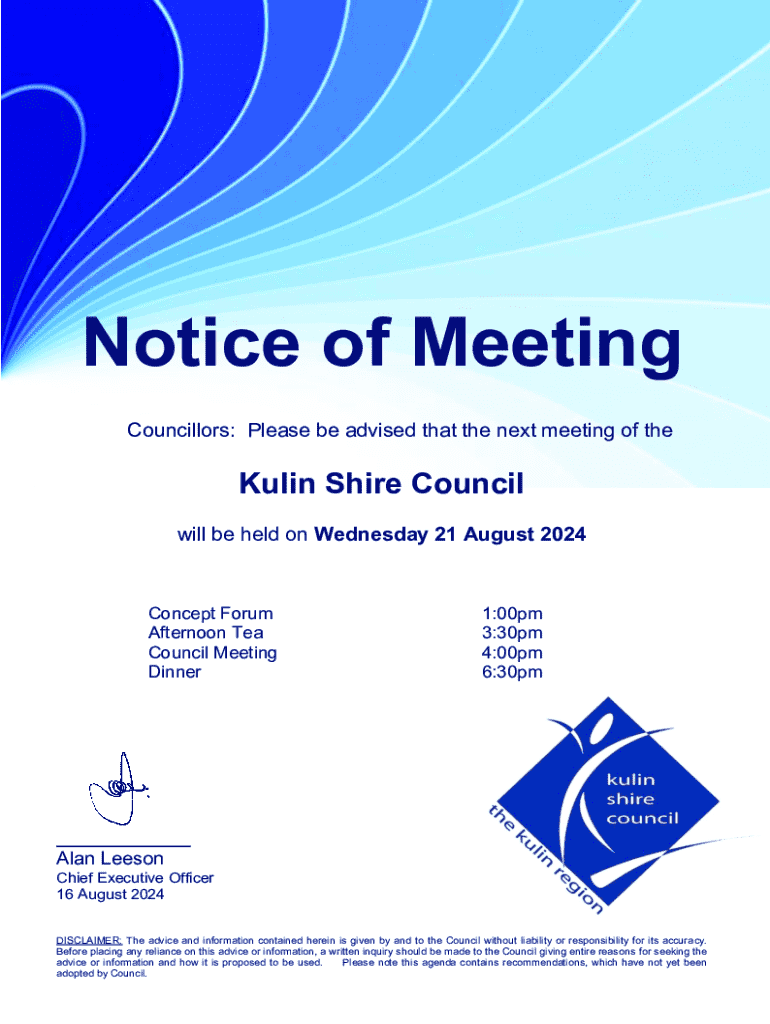 The importance of the notice of meeting form cannot be understated; it lays the groundwork for the meeting’s structure and direction. It is vital not only for compliance with organizational norms but also for ensuring transparency and accountability among participants. By providing a clear agenda, the notice helps to manage expectations and fosters productive discussions.
