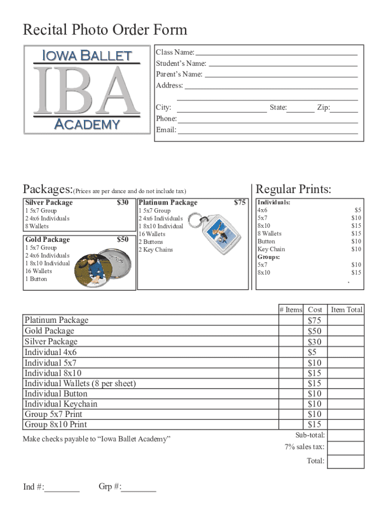 The significance of a well-structured recital photo order form cannot be overstated. It not only serves as a tool for collecting orders but also enhances communication about available packages, pricing, and delivery timelines. A detailed order form minimizes errors, simplifies the administrative work involved in handling orders, and ensures that families receive the memories of their children’s performances in a timely manner.