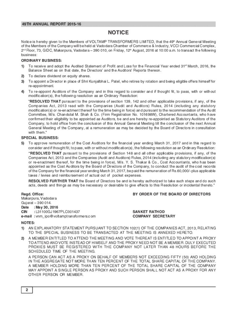 Get the free 49th Annual Report 2015-16