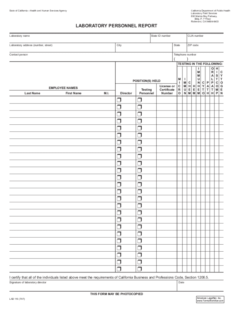 Get the free Laboratory Personnel Report