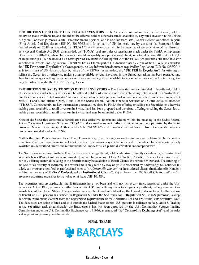 Get the free FINAL TERM SHEET Worst-of European Barrier Autocallable ...