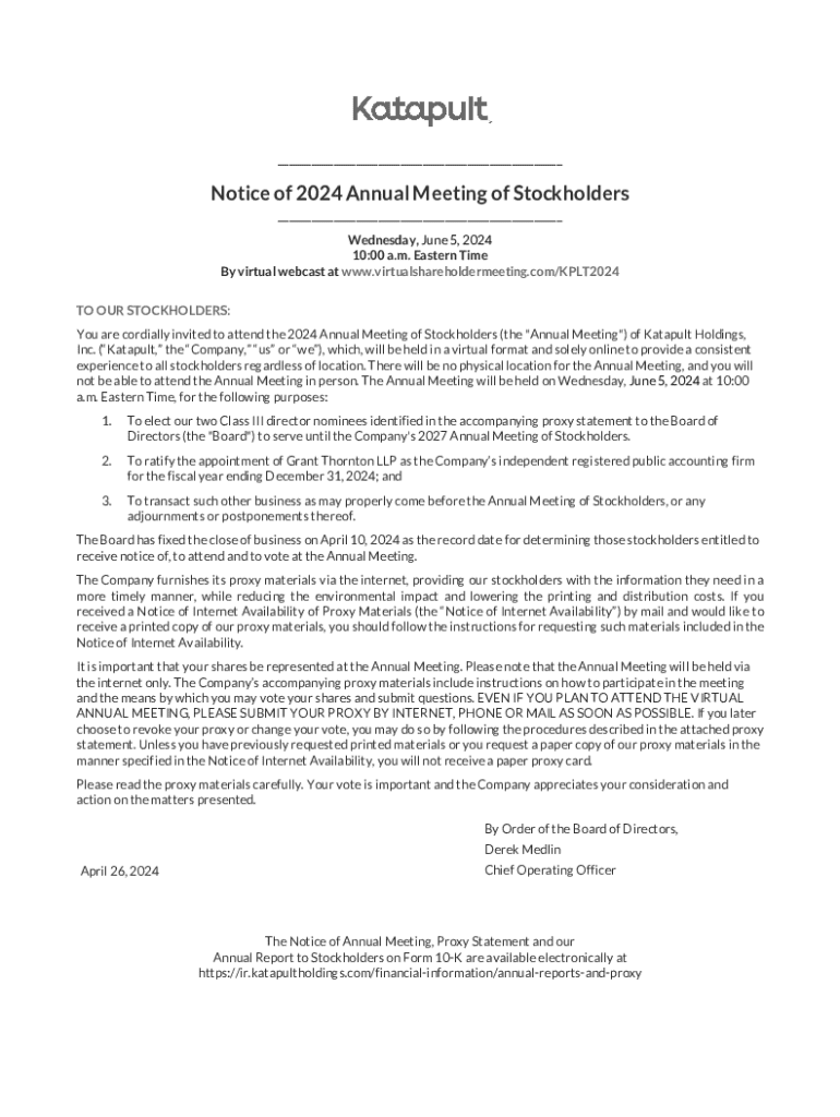 Get the free Notice of 2024 Annual Meeting of Stockholders