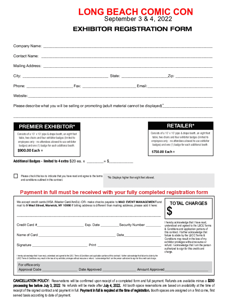 Get the free Long Beach Comic Expo Exhibitor Registration Form