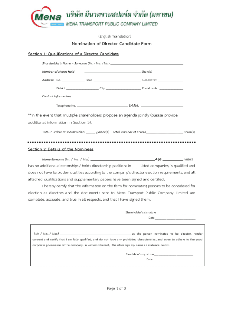 Comprehensive Guide to the Nomination of Director Candidate Form