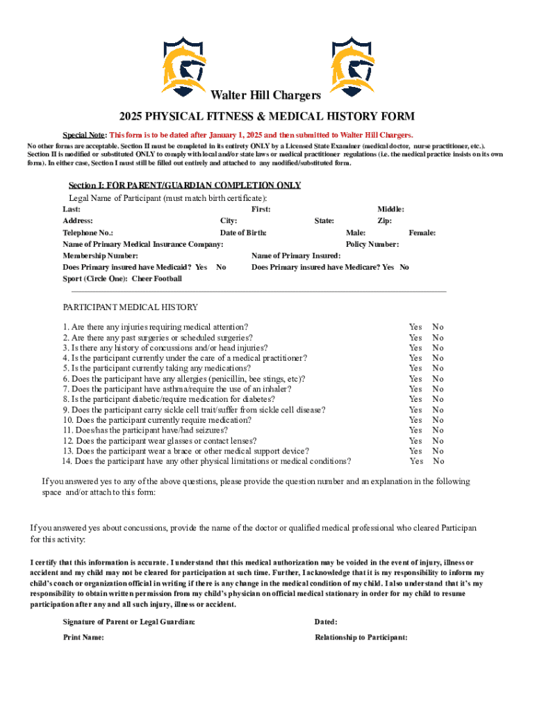 Get the free 2025 Physical Fitness & Medical History Form