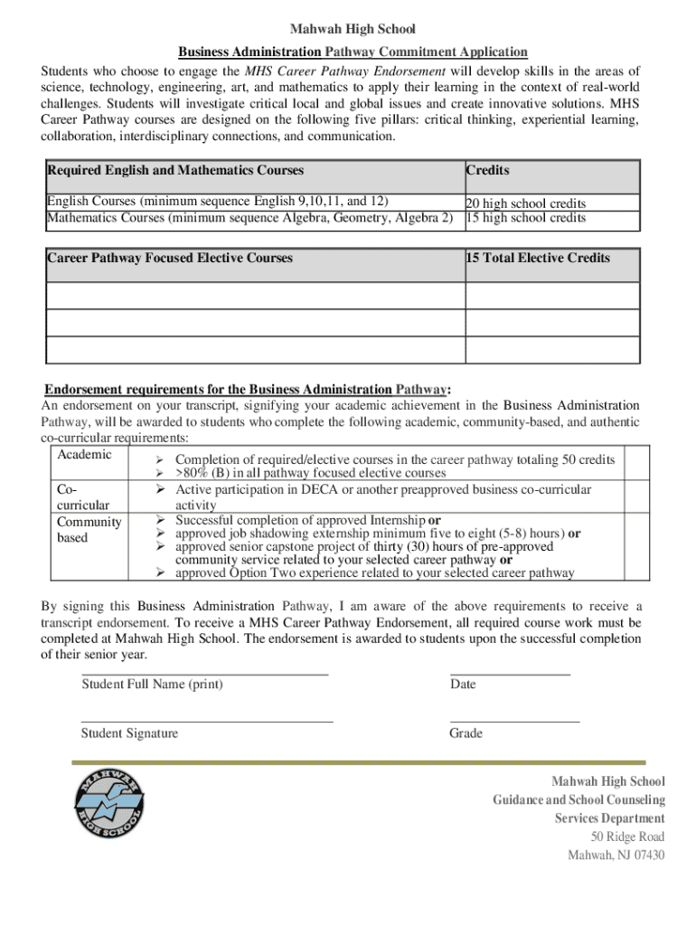 Get the free Business Administration Pathway Commitment Application