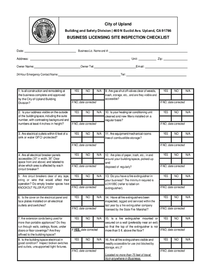 Get the free Business Licensing Site Inspection Checklist