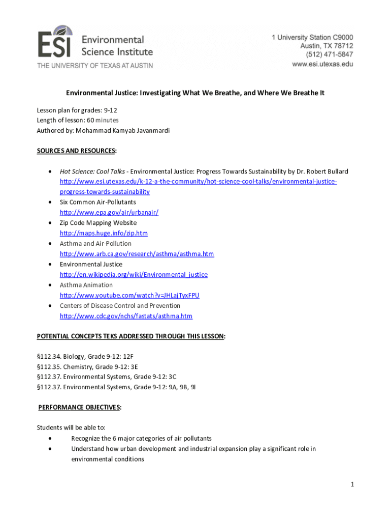 Get the free Environmental Justice: Investigating What We Breathe, and Where We Breathe It