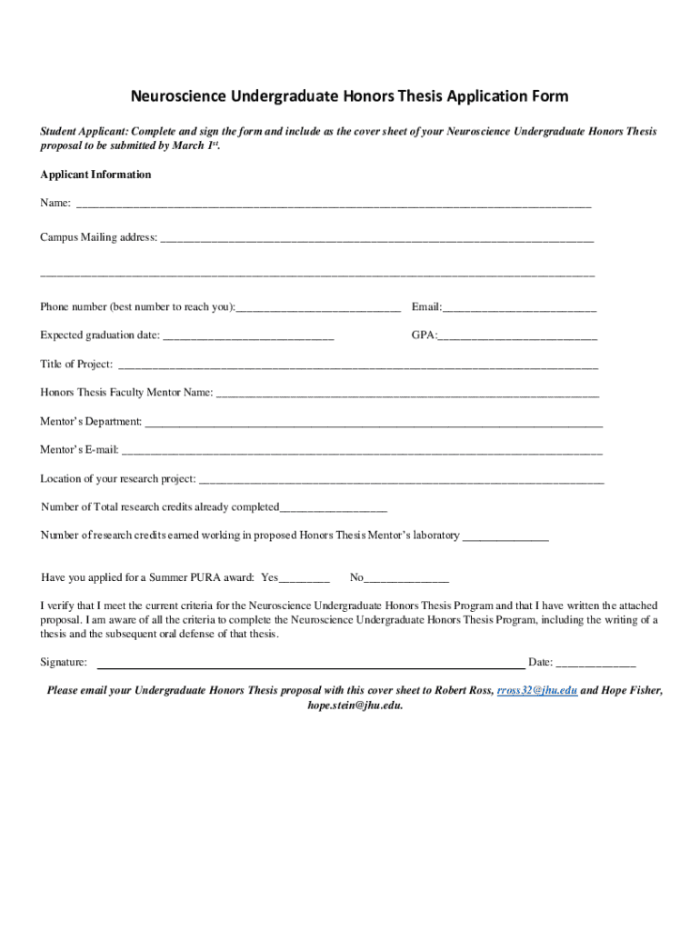 Get the free Neuroscience Undergraduate Honors Thesis Application Form