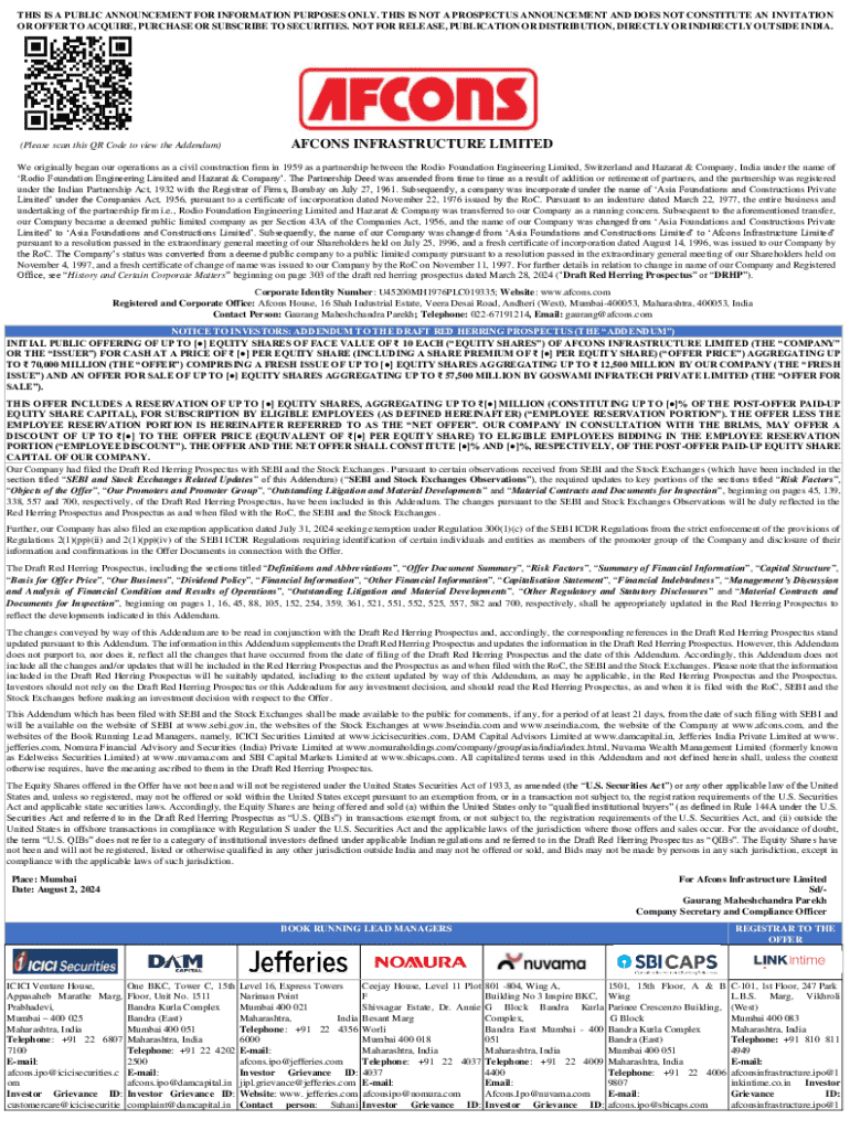 Get the free addendum to the draft red herring prospectus dated