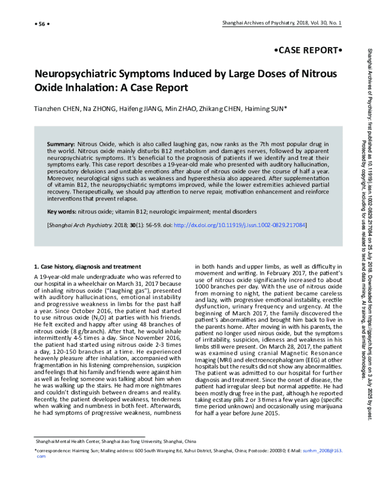 Get the free Neuropsychiatric Symptoms Induced by Large Doses of Nitrous Oxide Inhalation: a Case...